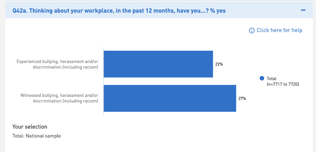22% of doctors in training report personal experience of bullying, harassment or discrimination and 27% report witnessing this. This is on part with other reports conducted around this issue, including one I helped write a few years back.