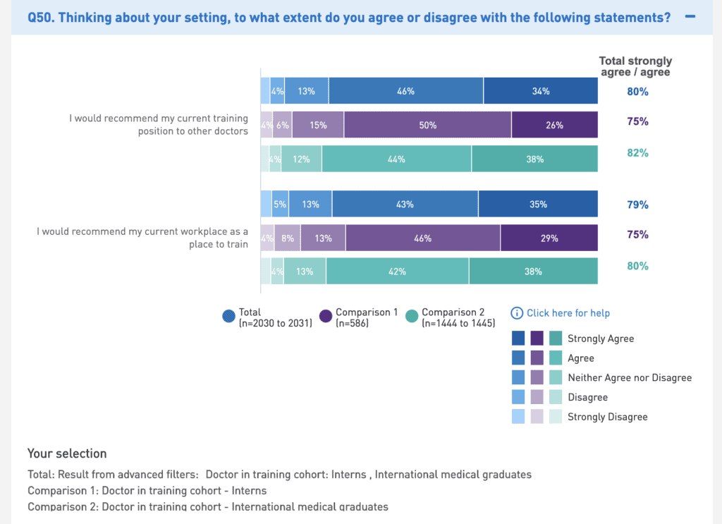 compared to 75% of interns. And 80% of IMGs would recommend their workplace to